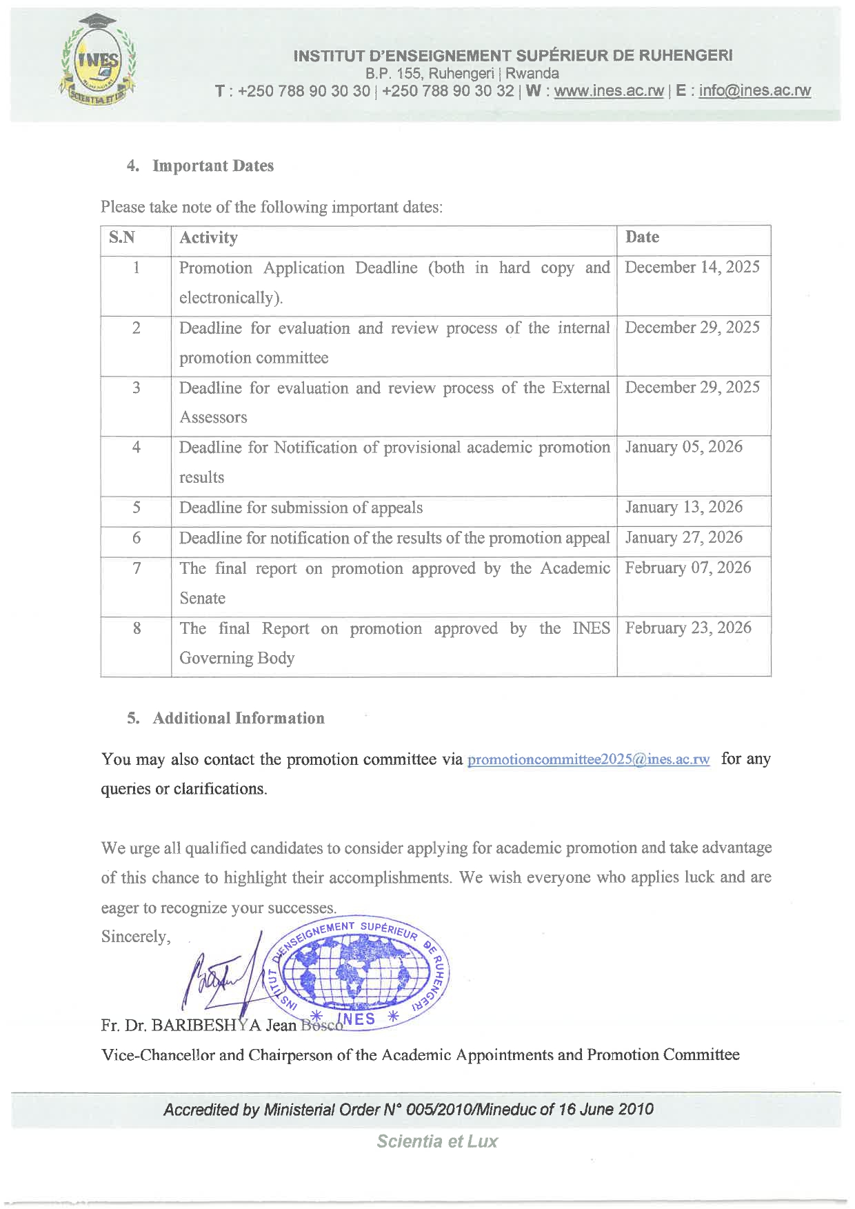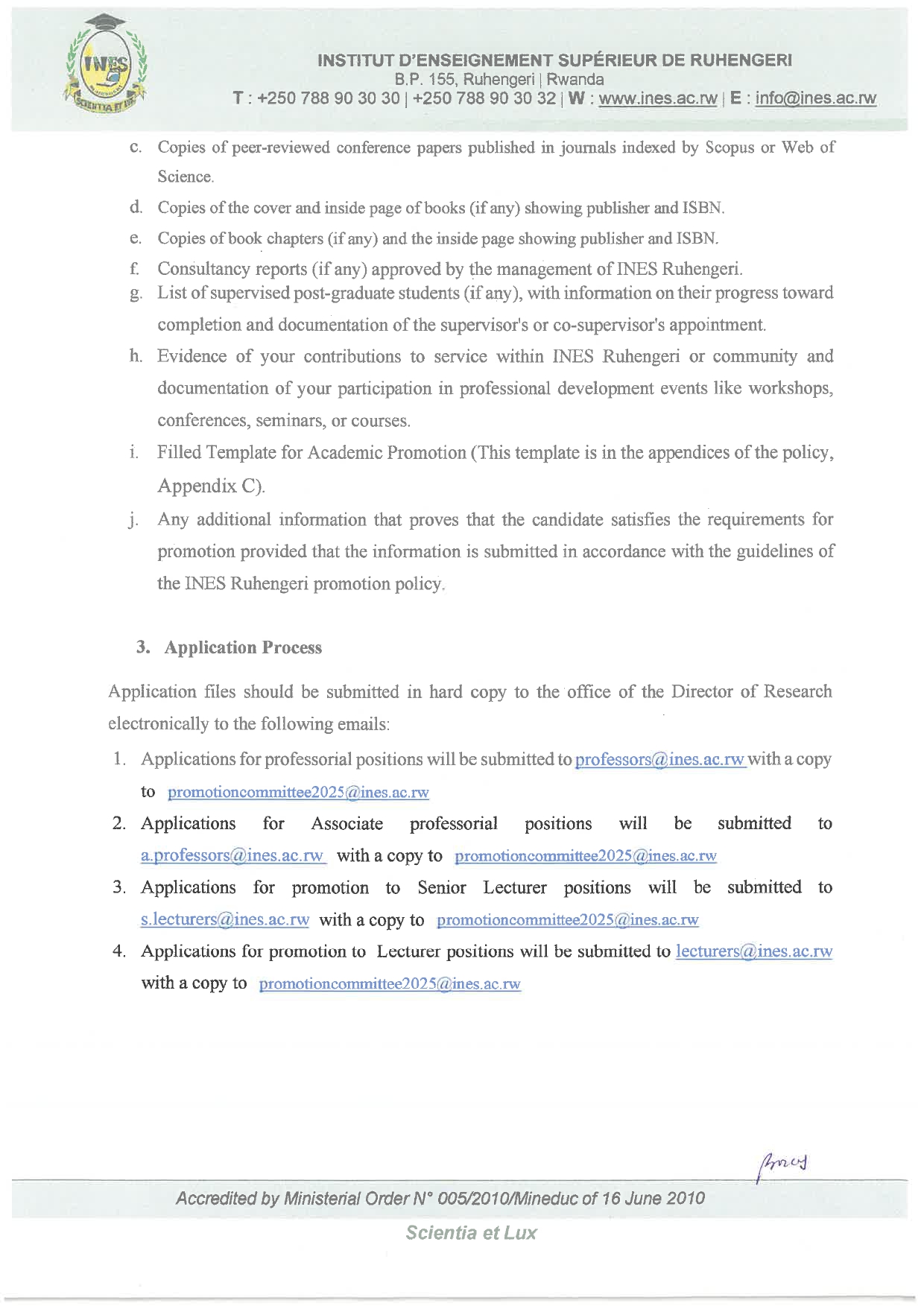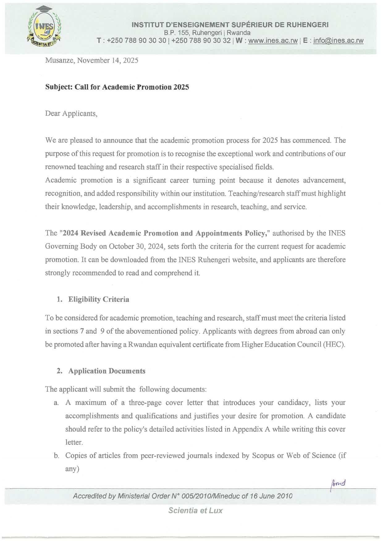 INES-Ruhengeri is excited to launch the 2025 Academic Promotion Process, recognizing the exceptional contributions of its teaching and research staff.